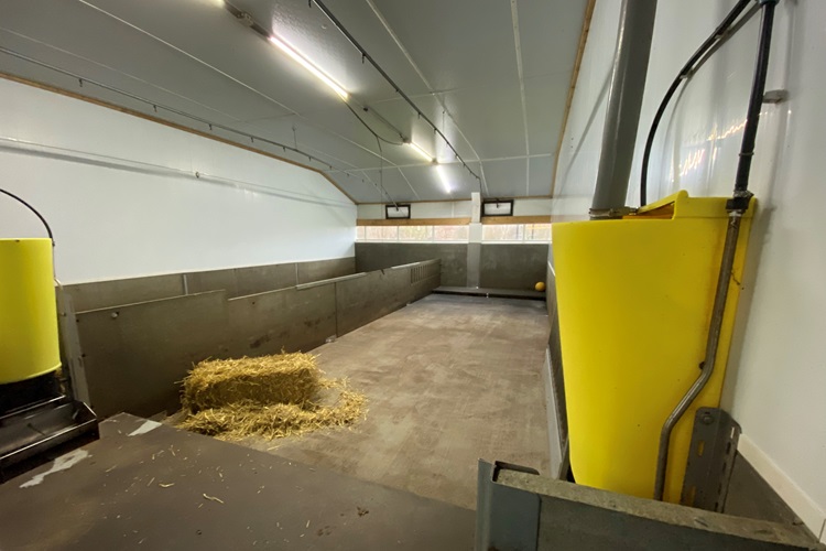 De vleesvarkens worden gehouden in een wroetstal van tien bij 3,5 meter.