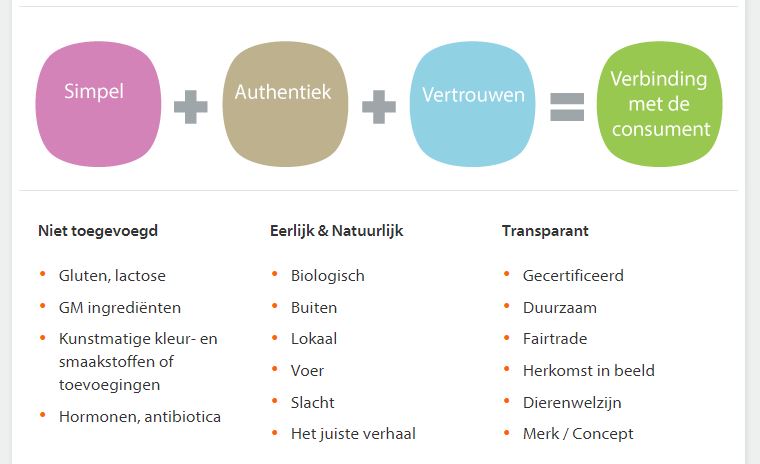 Wees onmisbaar voor de consument. Uiteindelijk draait het in de voedselketen om consumenten aan je product te binden en toegevoegde waarde te blijven leveren. Hoe je het product in de markt zet en wat je boodschap is, zijn daarbij belangrijk. Hieronder de kernelementen voor een krachtig verhaal van elk vleesproduct.