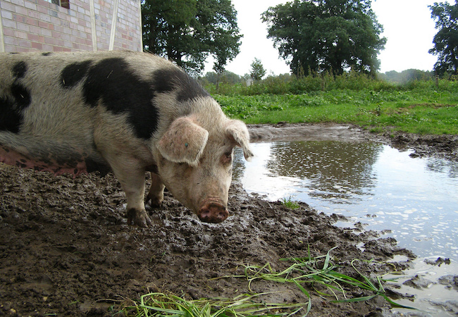 Norbert Mergen, fokker van bonte Bentheimers (landvarkens) kwam er per toeval achter dat de Japanse duizendknoop op zijn erf was verdwenen. De varkens op zijn erf hadden het onkruid opgegeten. Als grapje vertelde hij het aan een wethouder in Renkum: 'zet varkens in tegen de bestrijding van het onkruid.'