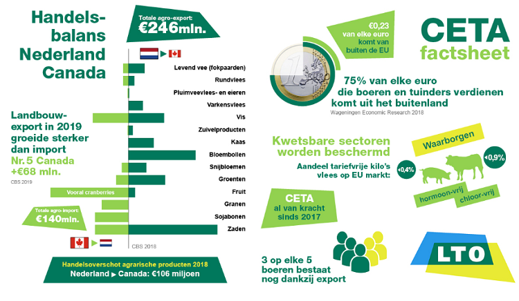 LTO Nederland steunt handelsverdrag CETA. Drie jaar na de start van CETA, is de export naar Canada groter dan de import. In die tijd heeft het boeren en tuinders meer opgeleverd dan gekost.