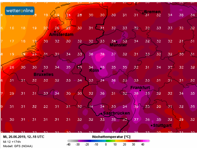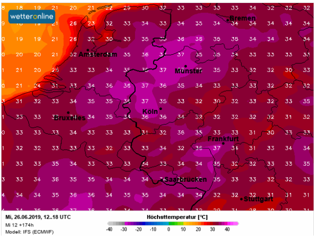 Of het all-time warmterecord er aan gaat is nog maar zeer de vraag. Ooit werd er op een officieel meetstation van het KNMI 38,6 graden gemeten. In Warnsveld werd deze waarde op 23 augustus 1944 afgelezen door waarnemer Jan Thate. De weerkaarten lijken nu nog niet zo ver te willen gaan, maar we hebben natuurlijk nog een paar dagen te gaan en we sluiten niets uit, aldus WeerPlaza.