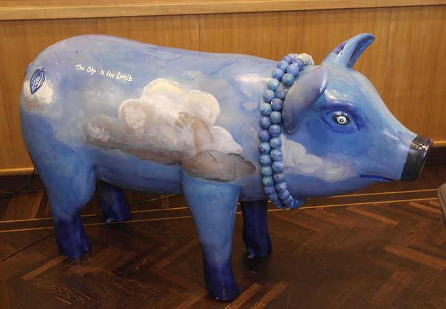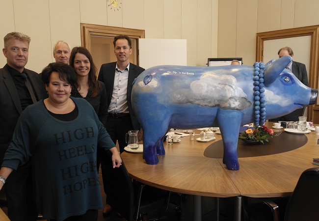 Het kunstvarken werd afgelopen zomer door Ingrid Jansen beschilderd tijdens de aftrap van de ‘Passion for pigs on tour’, van Varkens Vandaag.