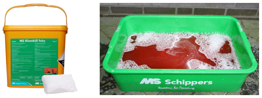 Het PED-tablet is zeer gemakkelijk in gebruik vanwege de handzame en in de juiste dosering voorverpakte, wateroplosbare zakjes. Plaats 2 zakjes in een desinfectiebak met 10 liter water en het ontsmettingsmiddel is klaar voor gebruik.