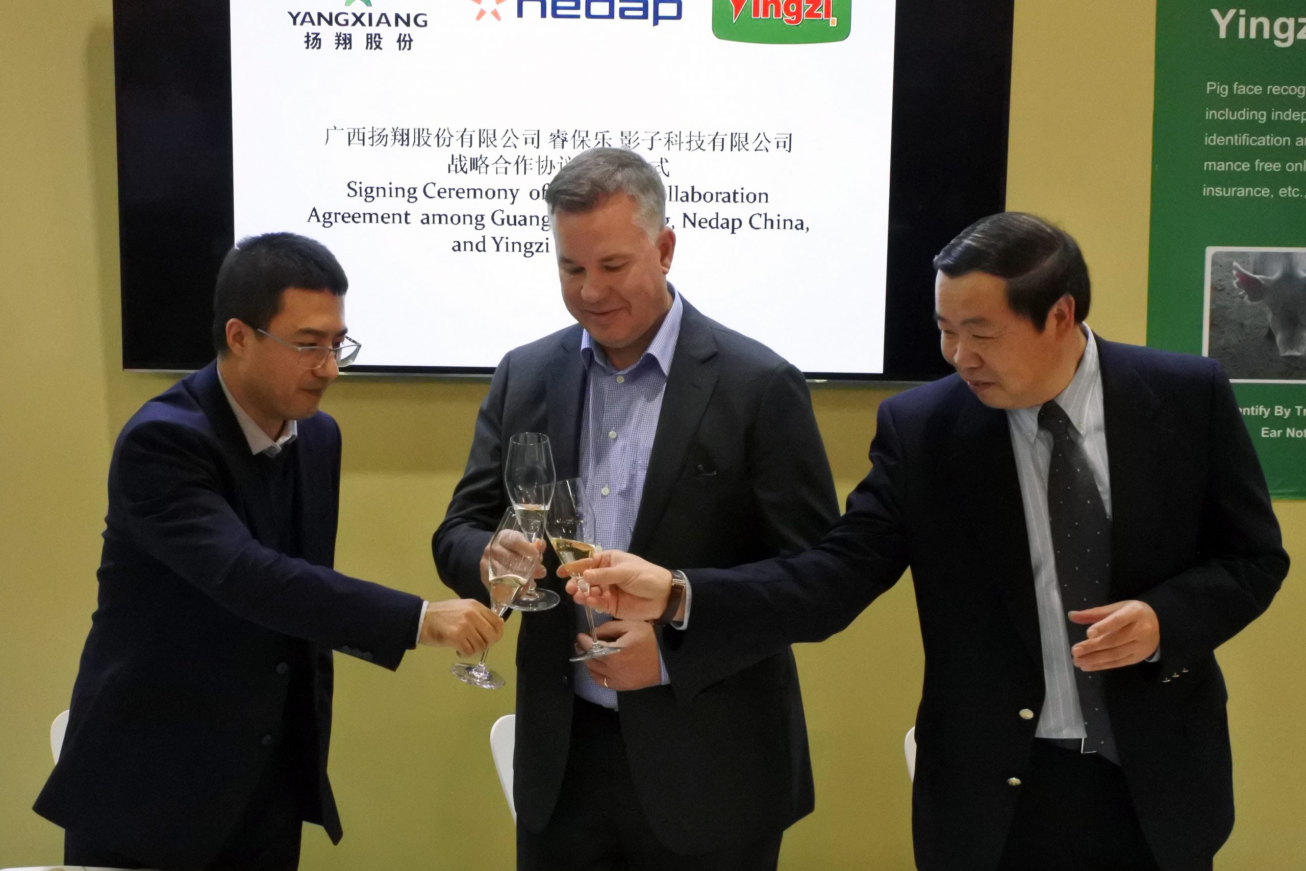 Nedap is wereldwijd marktleider in automatiseringsoplossingen voor individueel varkensmanagement in de gehele productiecyclus. Het snelgroeiende Yingzi ontwikkelt een intelligent ecosysteemplatform dat de gehele verticale industrie van veehouderij tot eettafel ondersteunt. Yangxiang is een gerenommeerde varkensproducent gericht op vooruitstrevende agrarische industrialisatie. Binnen haar bedrijfsvoering past Yangxiang reeds succesvol de geavanceerde technologie van zowel Nedap als Yingzi toe. Het bedrijf schaalt haar varkensproductie op en investeert daarbij voortdurend in deze toekomstbestendige technologieën waarin zij sterk gelooft. De drie partijen bundelen in deze nieuwe samenwerking hun krachten en geven zodoende een forse impuls aan de volgende generatie data- en informatiediensten.