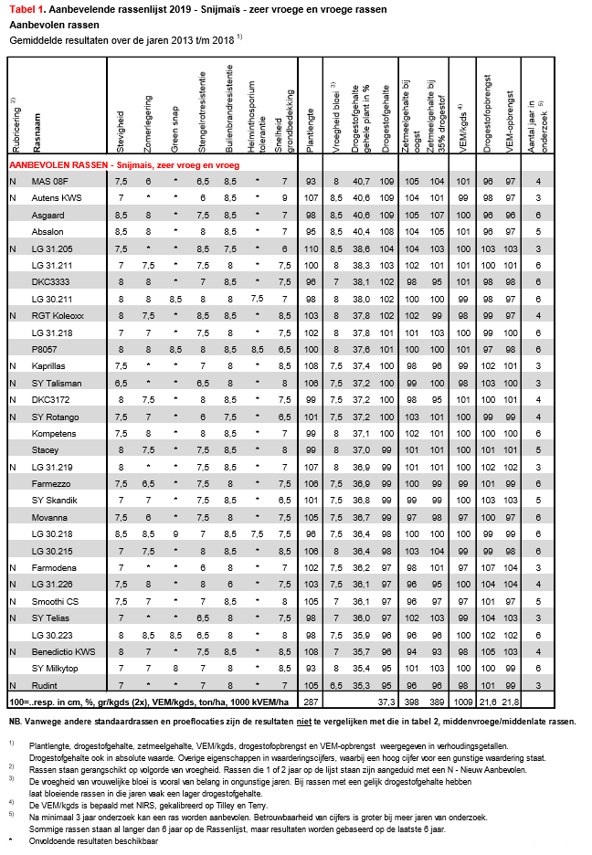 Snijmaïs, zeer vroege en vroege rassen