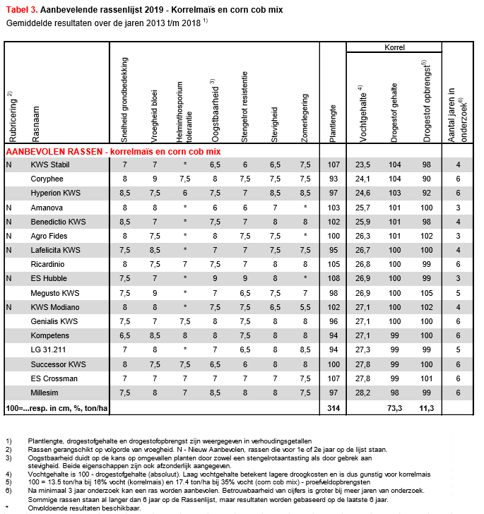 Snijmaïs, middenvroege en middenlate rassen