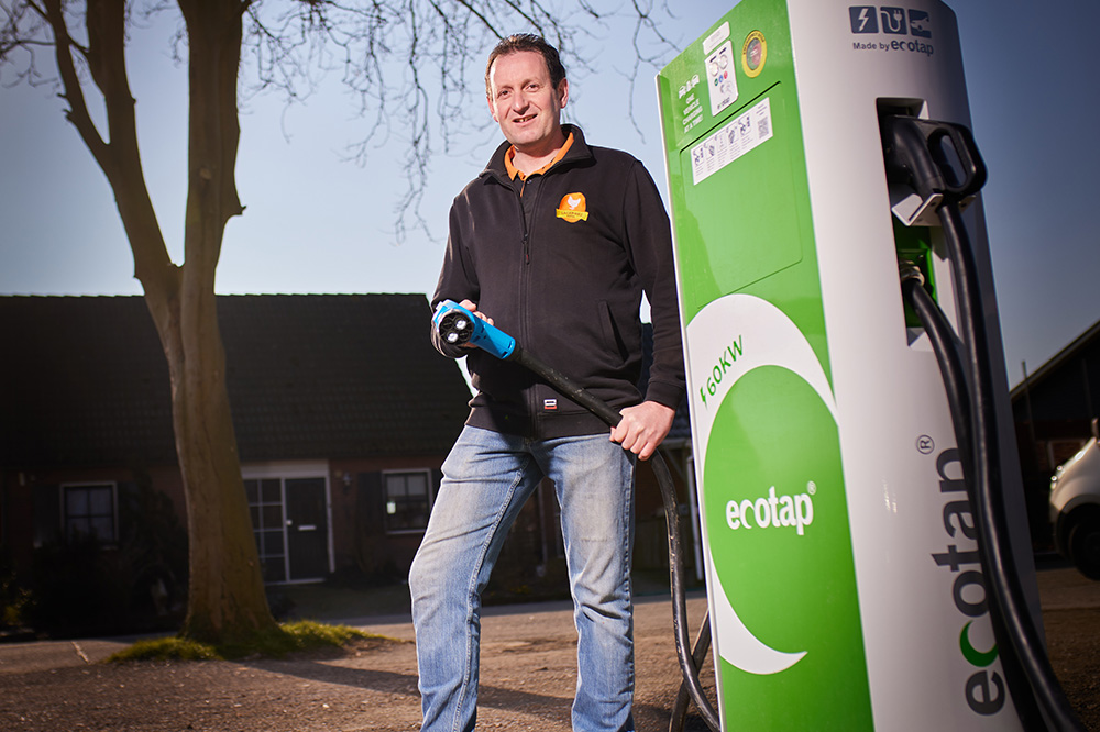 Daarom hebben ze recent een snellader voor het bedrijf geplaatst. Een flinke, want een snellader met een vermogen van 60kW vind je in deze regio voornamelijk langs snelwegen. En die zijn een stuk duurder. “Elektrische auto’s en motoren komen hier nu groene stroom tanken,” zegt Gert-Jan trots.