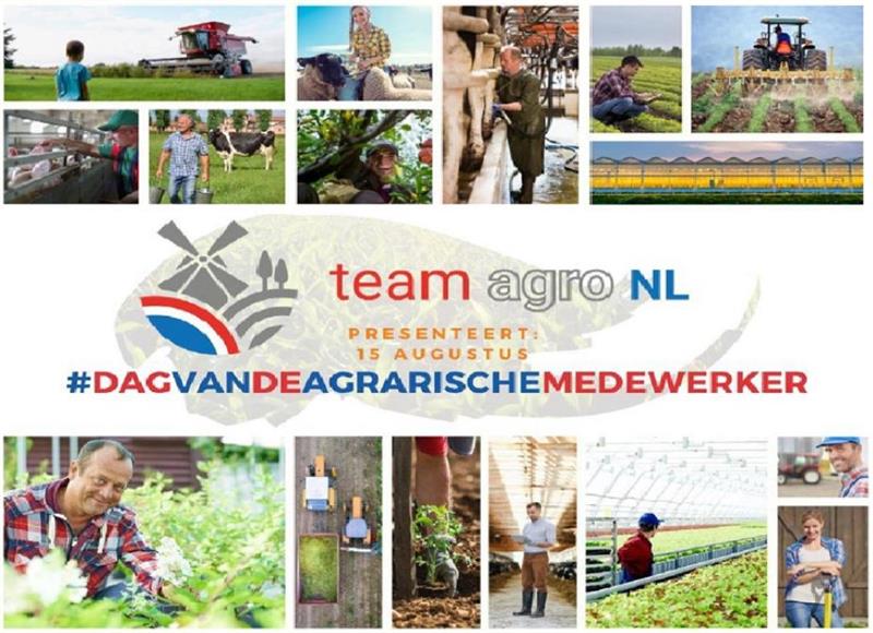 Deze agrarische bedrijven kunnen niet zonder hun medewerkers. Of het nu gaat om bijvoorbeeld het reinigen en ontsmetten van de stallen, het selecteren van pootaardappelen of bloembollen, met toegeruste landbouwvoertuigen de oogst binnenhalen of het deskundig pedicuren van de koeienpoten, op de agrarische medewerkers kan worden gerekend. Dat is  reden om voor Team Agro NL om op een speciale dag in het jaar de medewerkers in het zonnetje te zetten. Daarom wordt zaterdag 15 augustus uitgeroepen tot de Dag van de Agrarische Medewerker. Via een ´TeamAgroNL´- postkaart en het gebruiken van hashtag #Dagvandeagrarischemedewerker op Facebook, Twitter en Instagram kunnen boeren en tuinders hun eigen invulling geven.
