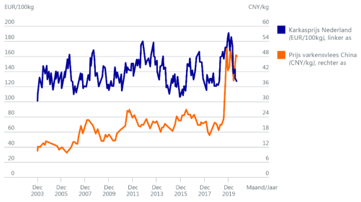 De verkoop van vlees staat onder druk door een lage consumptie buiten de deur door het coronavirus. Ook de varkenssector heeft hier last van. Corona heeft ook impact op de vleeshandel met China. De vooruitzichten waren begin van het jaar nog zeer positief, maar inmiddels zijn de prijzen flink gedaald. Nu Afrikaanse Varkenspest in Duitsland is bevestigd, is er nog meer onzekerheid. De komende dagen zal blijken hoe handelspartners en bedrijven hierop reageren. Een negatieve invloed op de prijzen in Nederland is waarschijnlijk.