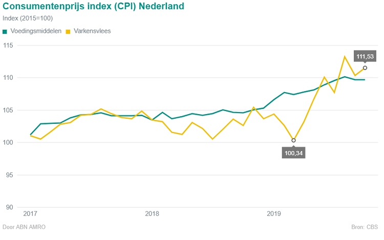 De hogere vleesprijs raakt een land als Nederland duidelijk wel. De vleesverwerkende industrie wordt inmiddels geconfronteerd met hogere inkoopprijzen en een mogelijk beperktere beschikbaarheid van varkensvlees. Varkenshouders profiteren overigens van de hogere prijzen.
