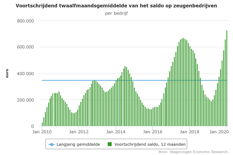 In januari bedroeg het voortschrijdend jaarsaldo ruim 700.000 euro per bedrijf. Dit is bijna 400.000 euro boven het langjarig voortschrijdend gemiddelde en de trend is nog positief.