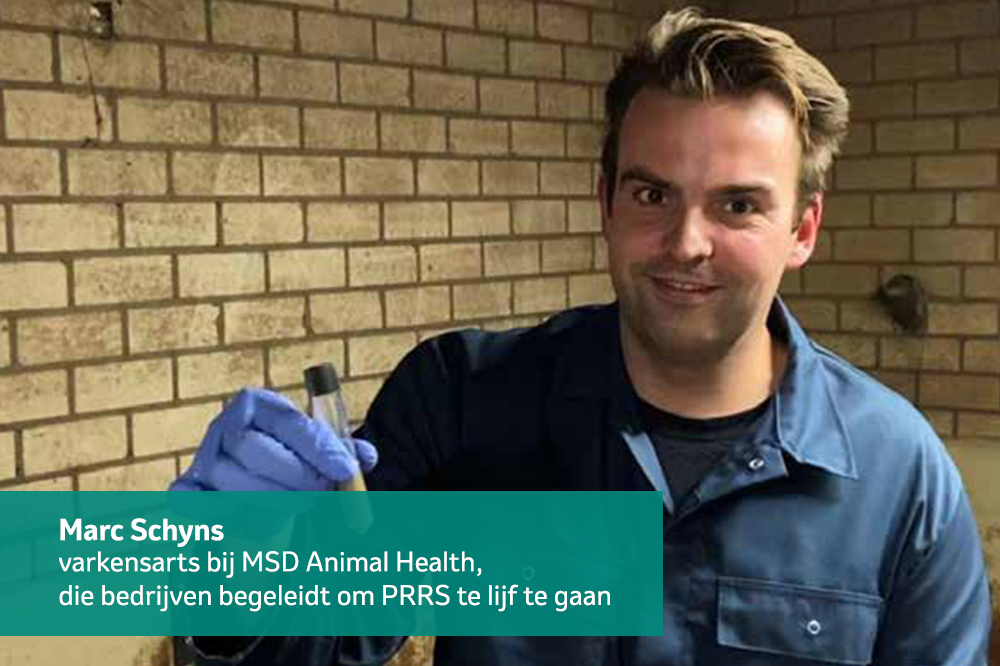 Een PRRS-vrije branche – waar men in Denemarken op dit moment naar streeft – is volgens Marc Schyns nog ver weg. “Ernaar streven is absoluut goed, maar helemaal uitroeien, dat is bij zo’n hoogst besmettelijk virus dat ook nog eens razendsnel muteert, een grote ambitie. Maar gelukkig hebben we steeds meer kennis en middelen om PRRS tijdig op te sporen en onder controle te houden, waardoor de schade op bedrijven aanzienlijk kan worden beperkt. Goede biosecuritymaatregelen zijn cruciaal, zowel in het voorkomen als bij de bestrijding van een uitbraak. Daarnaast is het van belang om de dieren preventief met een vaccin te beschermen dat zich op de meeste veldstammen richt. En wetende dat het virus zich zelfs via de lucht verspreidt, is het van belang om bedrijven in je directe omgeving op de hoogte te brengen, zodat zij extra scherp op signalen kunnen zijn. PRRS helemaal uitroeien is alleen haalbaar bij een multifactoriële én gezamenlijke aanpak.”