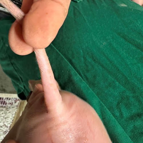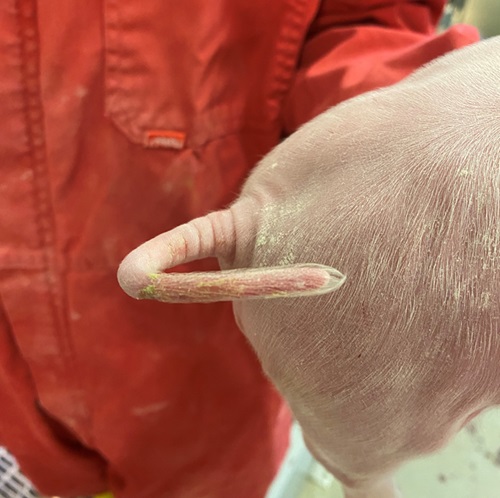 Op latere leeftijd werken de symptomen van SINS ook door, zelfs tot aan de slacht. Om dit in kaart te brengen doet Dierenartsenpraktijk Lintjeshof als één van de partners mee aan het door de Europese Unie gefinancierde project Tailscan, waarin diverse Europese partners uit onder andere Italië, Spanje en Nederland deelnemen. Het team van Lintjeshof heeft in juni 2024 digitale oormerken aangebracht bij pasgeboren biggen van twee zeugenbedrijven. Op één week leeftijd, na het spenen en enkele weken na opleg in de vleesvarkenshouderij werden de dieren uitgebreid gescoord en werden bloedmonsters afgenomen. Vervolgens werden de dieren digitaal opgevolgd tot aan de slacht. Aangezien de onderzochte dieren worden ingezet voor Parmaham, zijn ze op negen maanden leeftijd naar de slacht gegaan. Hier scoorde de Tailscan-robot de staarten op lengte en het aantal letsels. Op deze manier wordt gezocht naar de link tussen de toestand van dieren op jonge leeftijd en staartproblemen op latere leeftijd.