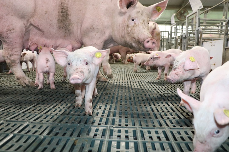 Technische resultaten: 34 gespeende biggen/zeug/jaar. Voerconversie is 2,28. Gemiddelde groei vleesvarkens per dag is 860 gram.
