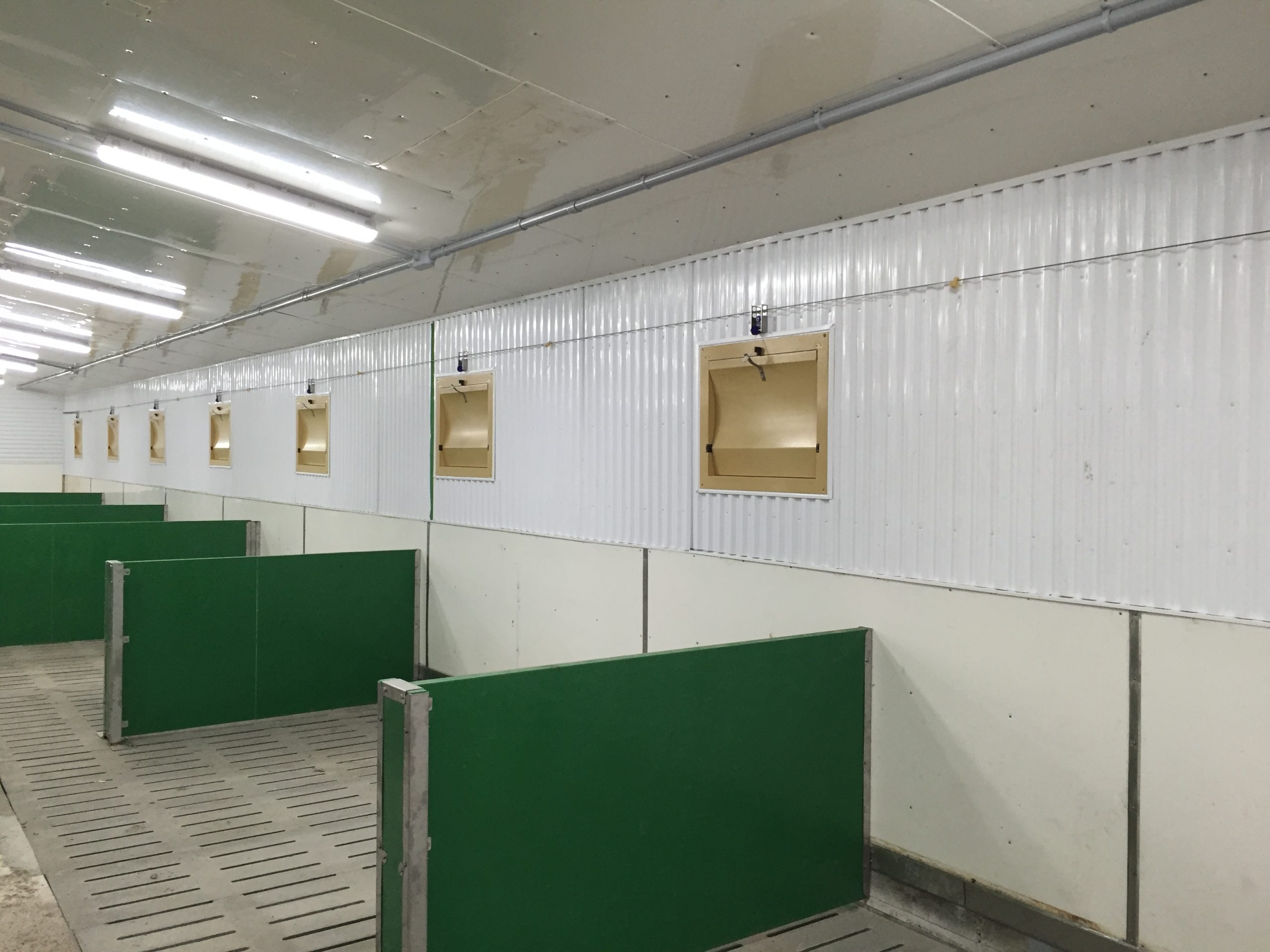 We zien in veel varkensstallen in Nederland centrale gangventilatie waarbij verschillende manieren worden gebruikt om de lucht binnen te halen. Denk hierbij aan bijvoorbeeld wand-inlaatventielen en aan plafond-inlaatventielen. Bij wand-inlaatventielen in varkenstallen gebruiken we bij voorkeur ventielen met rechte binnenklep om te voorkomen dat de koude lucht te snel naar beneden op de dieren valt. We zien echter ook stallen waar wat vierkantere ventielen worden gebruikt met gebogen binnenklep, deze zijn dan wat langer dan in rechthoekige ventielen om toch de binnenkomende lucht te laten mengen met verwarmde stallucht bovenin de stal.