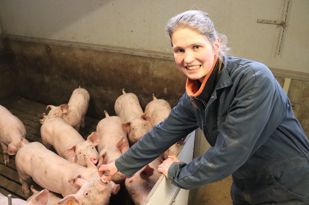 Het is net als in Nederland, de drempelwaardes liggen ontzettend laag.” Naast de 200 zeugen liggen er in Kalmthout nog duizend biggen (tussen de zeven en 25 kilogram) en 2.300 vleesvarkens. Lies Bernaerts studeerde af als bio-ingenieur aan de Universiteit Gent in België, een vijfjarige opleiding.