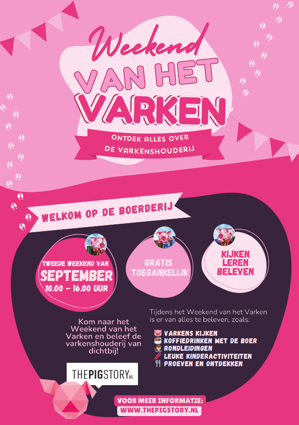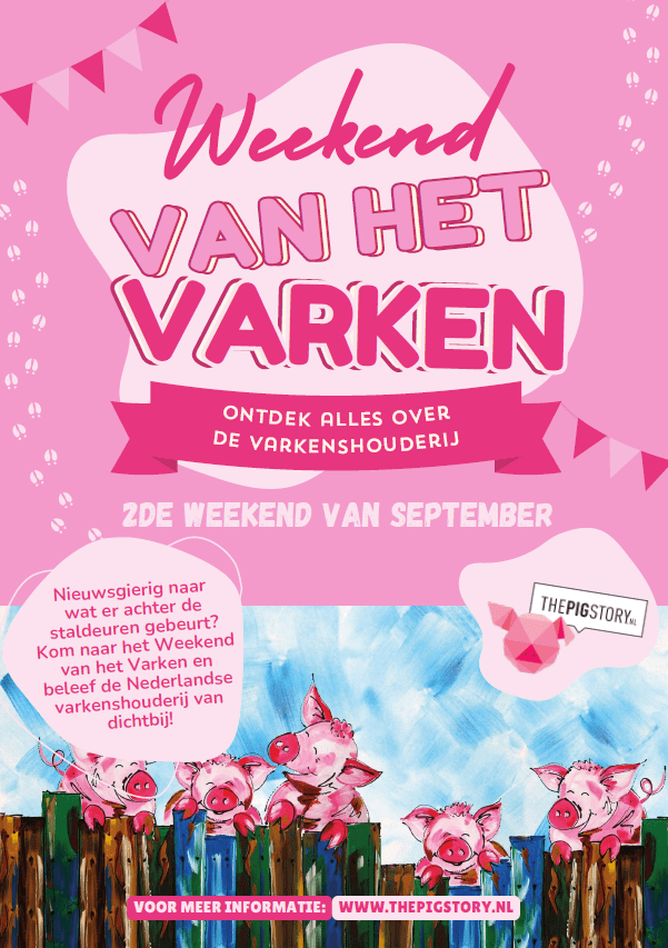 Op zaterdag 13 en zondag 14 september 2025 openen twintig varkenshouders verspreid over Nederland hun erf tijdens het Weekend van het Varken. Bezoekers krijgen een uniek kijkje achter de staldeuren en ontdekken hoe de moderne varkenshouderij eruitziet.