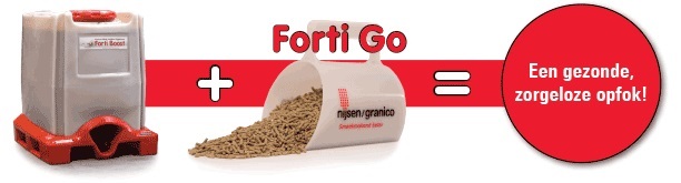 Dit unieke biggenvoerconcept is tijdens LIV Venray 2015 succesvol geïntroduceerd door Nijsen/Granico. In het Forti Go-concept wordt het kant-en-klaar vloeibaar biggenvoer Forti Boost opgevolgd door droogvoer uit de Forti Go-voerlijn.
