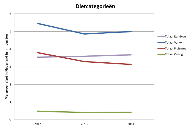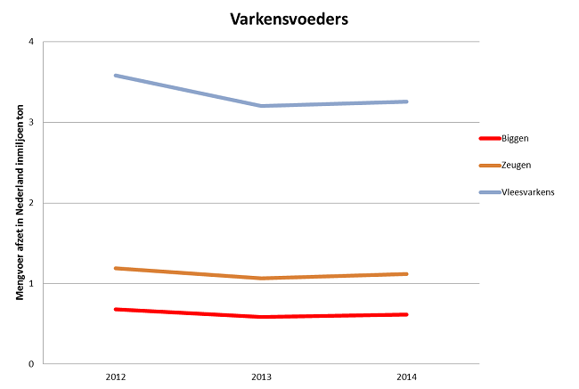 Uitgezet voor de varkensvoeders geven deze cijfers het volgende beeld voor de jaren 2012, 2013 en 2014