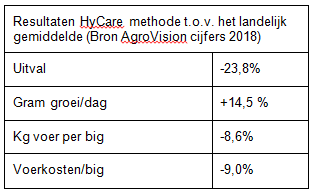 In het onderzoek kwam naar voren dat de voeropname verhoogt in een HyCare omgeving. Deze conclusie vroeg om een meer kritische blik naar het effect van de voersamenstelling en de rol van voeders in relatie tot de hygiëne management methode. Inzichten die zijn opgedaan worden meegenomen om het voer nog verder te verbeteren.