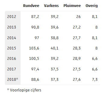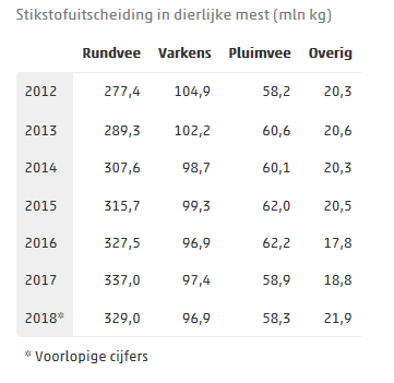 Tabel 2: Stikstofuitscheiding in dierlijke mest (mln kg)