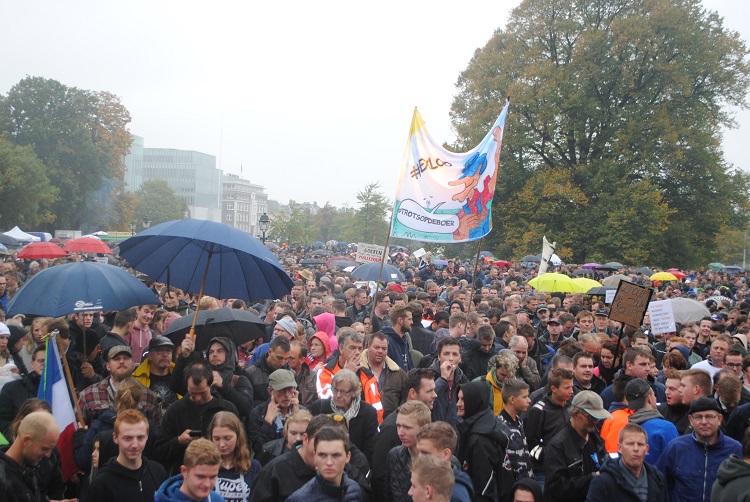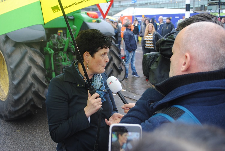 Sieta van Keimpema loopt als voorvrouw van de protestactie af en aan. Een interviewtje met de NOS hier en gesprekje met het Reformatorisch Dagblad daar. Eenmaal op het podium vraagt ze keer om keer aan de boeren om vooral rustig en respectvol te blijven. “Rutte heeft zich laf teruggetrokken, zoals de meeste van dit kabinet, achter een muur van geweld, intimidatie en uitlokking. En als er iets is wat we niet gaan doen, is ons uit laten lokken door iemand die hier niet eens durft te zijn. Dit kabinet lijkt een burgeroorlog uit te willen lokken.” In haar volgende woorden stookt ze het vuurtje toch aan. “Schande, dat jullie je boeren, kleineren, zo tot woede en wanhoop hebben gedreven. Er werd schande gesproken over het uit de hand gelopen protest in Groningen. De ontwrichte deur was echter al na een dag vervangen, terwijl de Groningse boeren al jarenlang met ontwrichte levens, bedrijven en gebouwen zitten. Schande, dit kabinet bestaat uit rovers en slopers.”