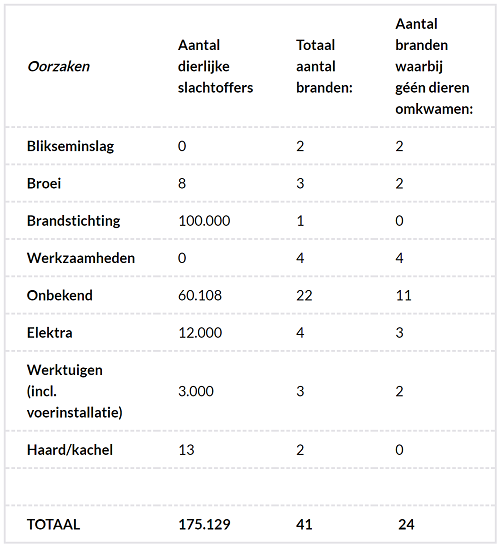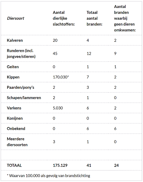 Tabel 1. Aantal dierlijke slachtoffers en stalbranden in 2019.